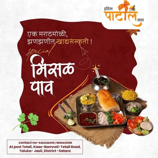 हॉटेल पाटील वाडा – साताऱ्यातील सर्वोत्तम सीफूड ठिकाण! स्थान: टेटली, कास-बामणोली-टेटली रोड, तालुका – जावली, जिल्हा – सातारा संपर्क: 9423326359 / 9699435100
