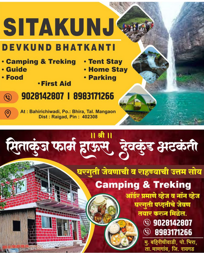 Devkund waterfall, stay and camping Farm house sita kunj