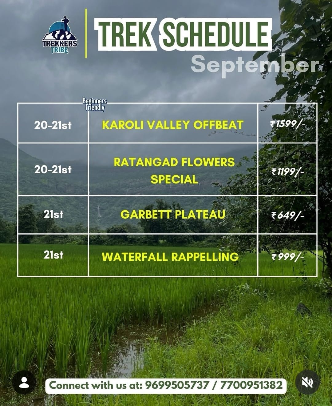 trekkers tribe treks 20th 21st sept