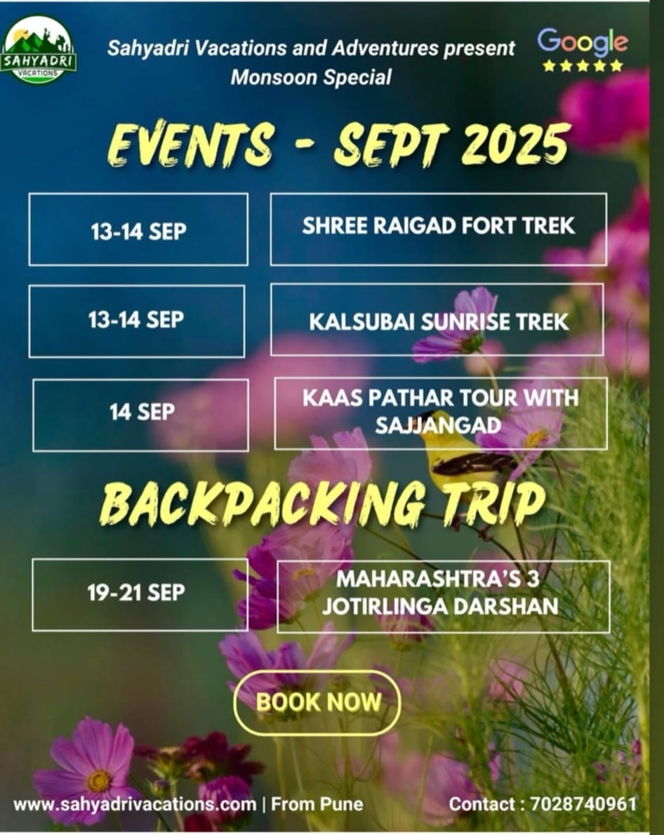 1 » Mumbai Pune trek list 2025 » #mumbai #pune treks and trips 13th 14th sept 2025 – 7 September 2025 » sahyadrivacations sept eventssahyadrivacations sept eventsby mumbai hikersSeptember 9, 2025September 12, 2025 sahyadrivacations sept events Leave a Reply Cancel replyYour email address will not be published. Required fields are marked *Name * Email * Website Comment * Save my name, email, and website in this browser for the next time I comment. Δ This site uses Akismet to reduce spam. Learn how your comment data is processed.
