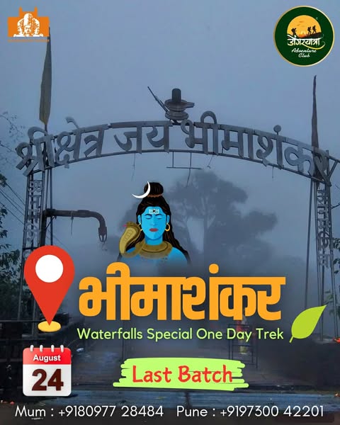 1 » Mumbai Pune trek list 2025 » #mumbai #pune treks and trips 22nd to 25th August 2025 – 17 August 2025 » Dongaryatra Bhimashankar Wildlife Sanctuary 24th augDongaryatra Bhimashankar Wildlife Sanctuary 24th augby mumbai hikersAugust 18, 2025 dongaryatra bhimashankar wildlife sanctuary 24th aug Leave a Reply Cancel replyYour email address will not be published. Required fields are marked *Name * Email * Website Comment * Save my name, email, and website in this browser for the next time I comment. Δ This site uses Akismet to reduce spam. Learn how your comment data is processed.