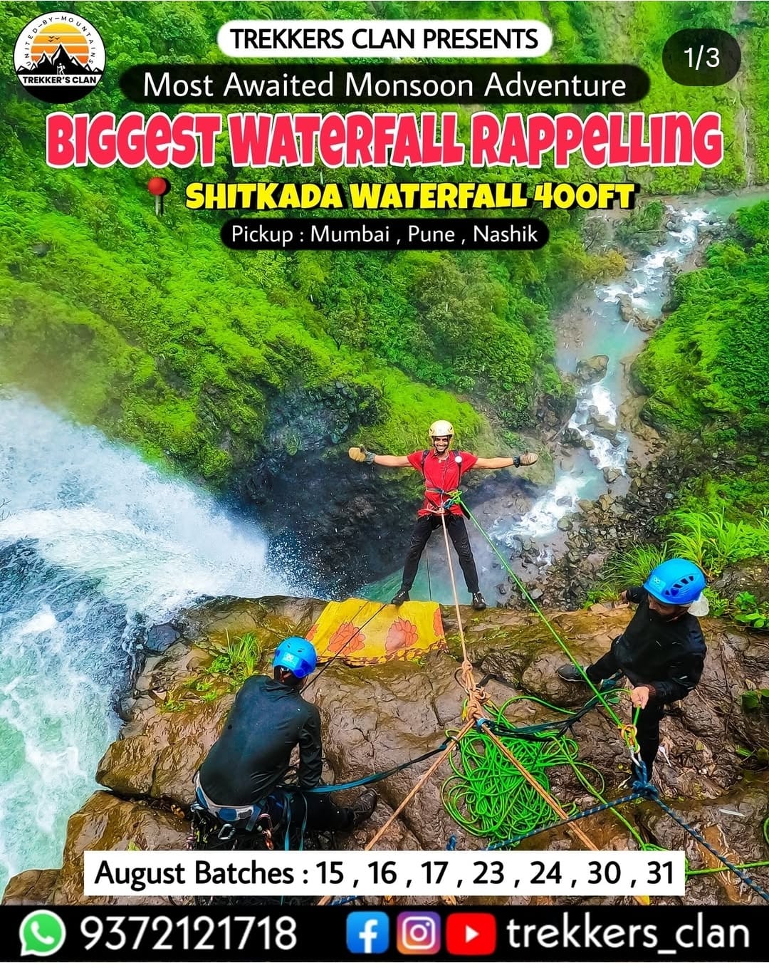 1 » Mumbai Pune trek list 2025 » #mumbai #pune treks and trips 22nd to 25th August 2025 – 17 August 2025 » trekkers clam shitkada waterfall rappelling 23rd augtrekkers clam shitkada waterfall rappelling 23rd augby mumbai hikersAugust 17, 2025 trekkers clam shitkada waterfall rappelling 23rd aug Leave a Reply Cancel replyYour email address will not be published. Required fields are marked *Name * Email * Website Comment * Save my name, email, and website in this browser for the next time I comment. Δ This site uses Akismet to reduce spam. Learn how your comment data is processed.
