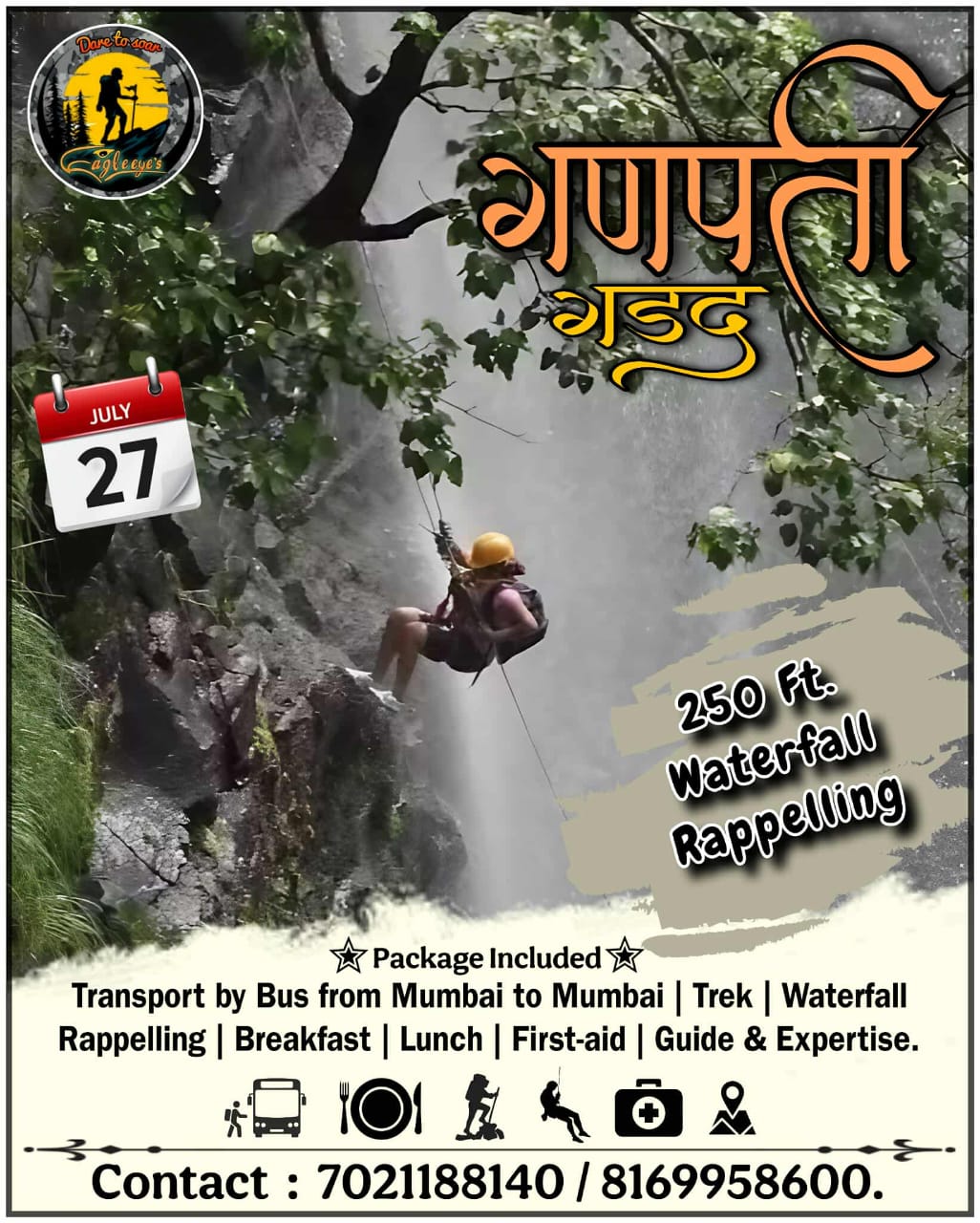 Adventure waterfall rappelling tour in Mumbai on July 27.