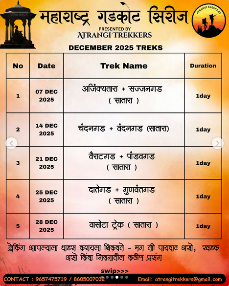 1 » Mumbai Pune trek list 2025 » #mumbai #pune treks and trips 6th 7th december 2025 – 30 November 2025 » atrangi trekkers events december 2025atrangi trekkers events december 2025by mumbai hikersNovember 30, 2025 atrangi trekkers events december 2025 Leave a Reply Cancel replyYour email address will not be published. Required fields are marked *Name * Email * Website Comment * Save my name, email, and website in this browser for the next time I comment. Δ This site uses Akismet to reduce spam. Learn how your comment data is processed.