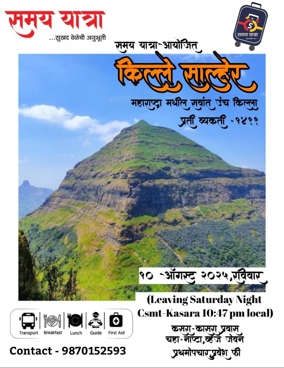 1 » Mumbai Pune trek list 2025 » #mumbai #pune treks and trips 8th to 10th august 2025 – 3 August 2025 » samay yatra salher fort trek 10th augsamay yatra salher fort trek 10th augby mumbai hikersAugust 6, 2025 samay yatra salher fort trek 10th aug Leave a Reply Cancel replyYour email address will not be published. Required fields are marked *Name * Email * Website Comment * Save my name, email, and website in this browser for the next time I comment. Δ This site uses Akismet to reduce spam. Learn how your comment data is processed.
