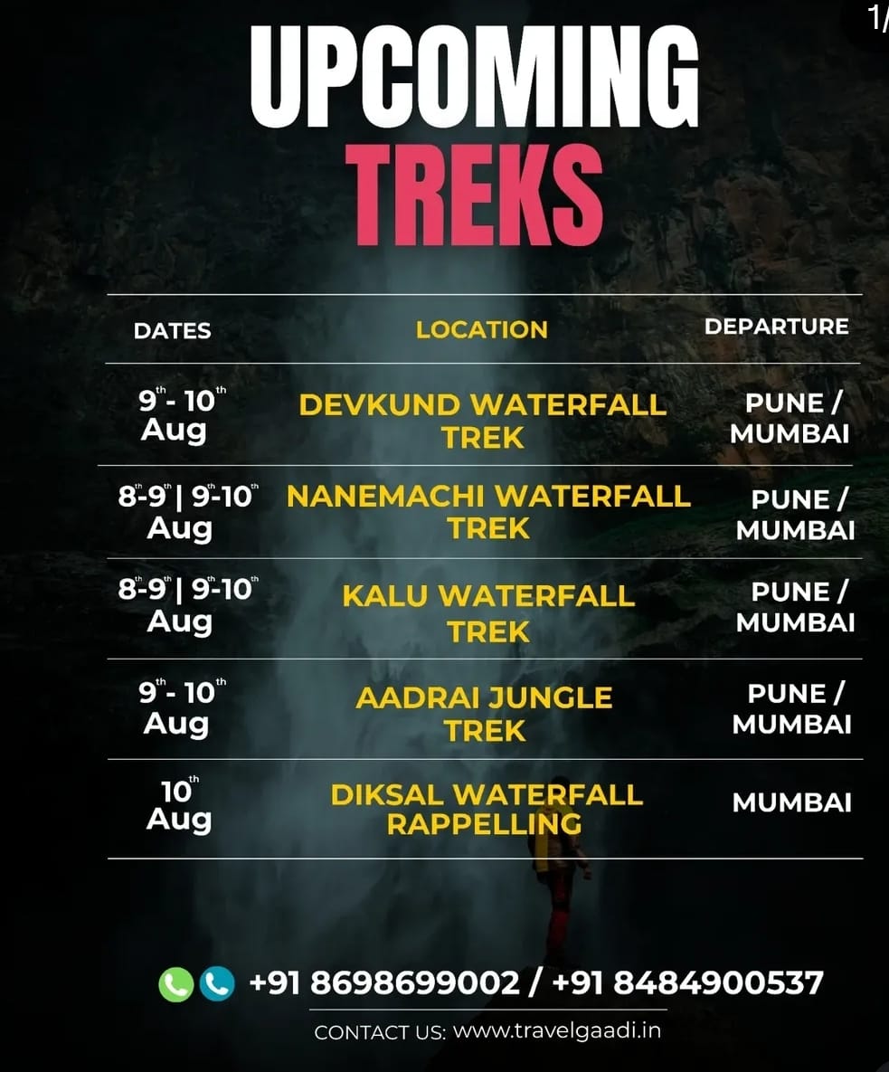 1 » Mumbai Pune trek list 2025 » #mumbai #pune treks and trips 8th to 10th august 2025 – 3 August 2025 » travel gaadi events aug 2025travel gaadi events aug 2025by mumbai hikersAugust 6, 2025 travel gaadi events aug 2025 Leave a Reply Cancel replyYour email address will not be published. Required fields are marked *Name * Email * Website Comment * Save my name, email, and website in this browser for the next time I comment. Δ This site uses Akismet to reduce spam. Learn how your comment data is processed.