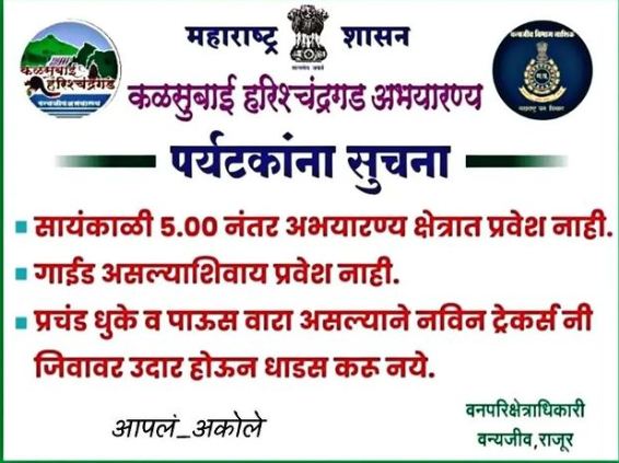 New Regulations, Due to increasing incidents in Harishchandra Gad, Ratangad, Bhandaradara tourism area, new regulations have been organized by the forest department for tourists, share it with your friends.