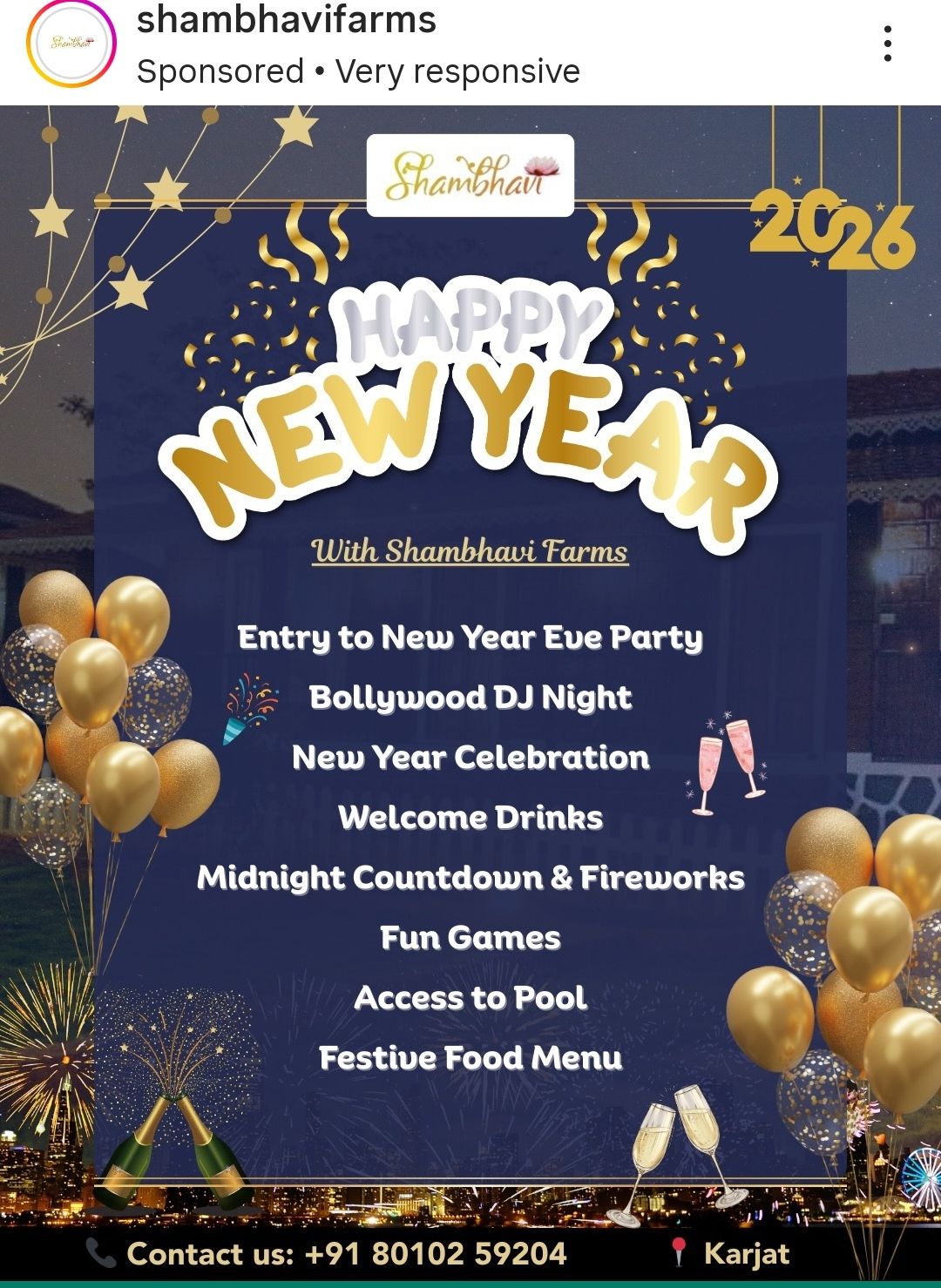 1 » New Year Camping 2026 » New year 2026 camping around Maharashtra India – 31st December 2025 » shambhavi farms karjatshambhavi farms karjatby mumbai hikersDecember 12, 2025 shambhavi farms karjat Leave a Reply Cancel replyYour email address will not be published. Required fields are marked *Name * Email * Website Comment * Save my name, email, and website in this browser for the next time I comment. Δ This site uses Akismet to reduce spam. Learn how your comment data is processed.