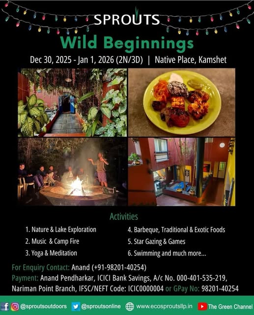 1 » New Year Camping 2026 » New year 2026 camping around Maharashtra India – 31st December 2025 » sprouts kamshetsprouts kamshetby mumbai hikersDecember 26, 2025 sprouts kamshet Leave a Reply Cancel replyYour email address will not be published. Required fields are marked *Name * Email * Website Comment * Save my name, email, and website in this browser for the next time I comment. Δ This site uses Akismet to reduce spam. Learn how your comment data is processed.