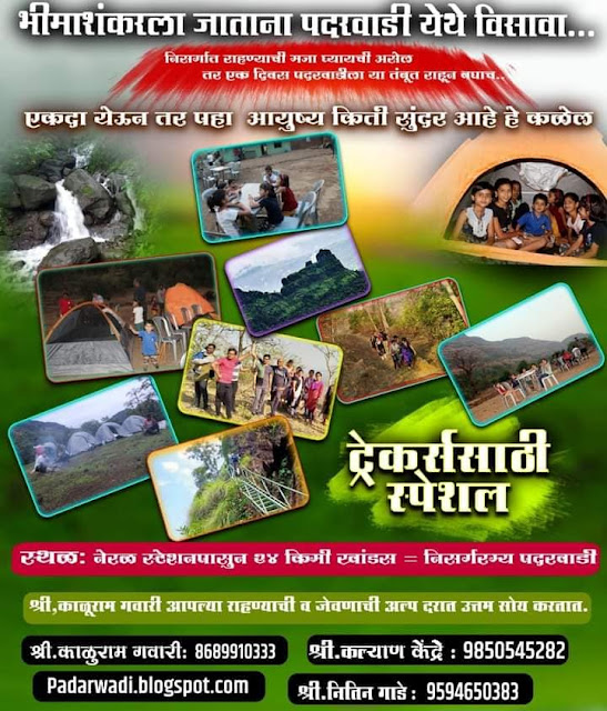 In the same way, in summer and winter, you can enjoy the pleasure of sleeping in nature in this tent. At the same time, Mr. Gawri has provided accommodation and food for the tourists. Tourists can have a delicious meal on the stove as per their liking. An overnight stay at this place is a treat. On days other than the rainy season, the scenic beauty of nature can be seen in various forms, but the description of the rainy season is indescribable. The chirping of birds after waking up in the morning, the fragrant atmosphere of the morning, the cool air gives a different kind of happiness and upliftment to the mind in the atmosphere of waterfalls flowing from Bhimashankar’s cliff, noisy water flowing, people’s Har Har Mahadev’s alarm and green shawl covered by nature. If you are going to this area, definitely plan to stay here because you will be convinced that this happiness is the greatest happiness in life. You will find the state animal of your kingdom, Shekru, in this forest. The hawthorn sight in front of us in the morning and the dazzling view of the fog and clouds that blow on it and the roaring wind make you wonder how many times you have to keep an eye on it and how many times you have to go back to that place. You can also enjoy bathing in the river or in the well. So if you ever go to Bhimashankar, go to Padar fort, make sure to stay in Padarwadi. And don’t forget to take advantage of Gawri Sara’s hospitality. You can also enjoy bathing in the river or in the well. So if you ever go to Bhimashankar, go to Padar fort, make sure to stay in Padarwadi. And don’t forget to take advantage of Gawri Sara’s hospitality. You can also enjoy bathing in the river or in the well. So if you ever go to Bhimashankar, go to Padar fort, make sure to stay in Padarwadi. And don’t forget to take advantage of Gawri Sara’s hospitality.