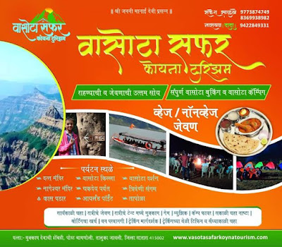 वासोटा सफर कोयना टुरिझम – सातारा ( जावली), महाराष्ट्र* *शिवाजी महाराजांच्या काळात या किल्ल्याचा वापर ‘तुरुंग’ म्हणून केला जात असे. याचे कारण तेथील निर्जन व घनदाट असे अरण्य.* जावळी खोऱ्यातून वाहणारी कोयना नदी, जिच्या घनदाट जंगलात दडलेले आहेत अनेक गूढ आणि त्याच कोयनेचा वाघ म्हणजे व्याघ्रगड. पूर्वेला घनदाट अरण्य आणि पश्चिमेला कोकणात कोसळणारे बेलाग कडे यामुळे वासोट्याची दुर्गमता खूप वाढली आहे. वासोटा भटकंती , मुख्यतः बोटीनेप्रवास करून किल्ल्याच्या पायथ्याशी पोहोचणार म्हणून आकर्षित करणारा हा ट्रेक. कोयनेच्या अभयारण्यातील निळ्याशार शिवसागर जलाशयातील आल्हाददायक सफर. सह्याद्री व्याघ्र प्रकल्पातून जंगल सफारी करत वन्यसंपदेचा अभ्यास करत भटकंती. वासोट्याच्या रौद्र कड्यावरून व्याघ्रगड,नागेश्वर गुहा, चकदेव पर्वत दर्शन. वासोटा म्हणजेच कैद्यांसाठी असलेला कैदखाना अधिक महितीसाठी संपर्क- 8369938982