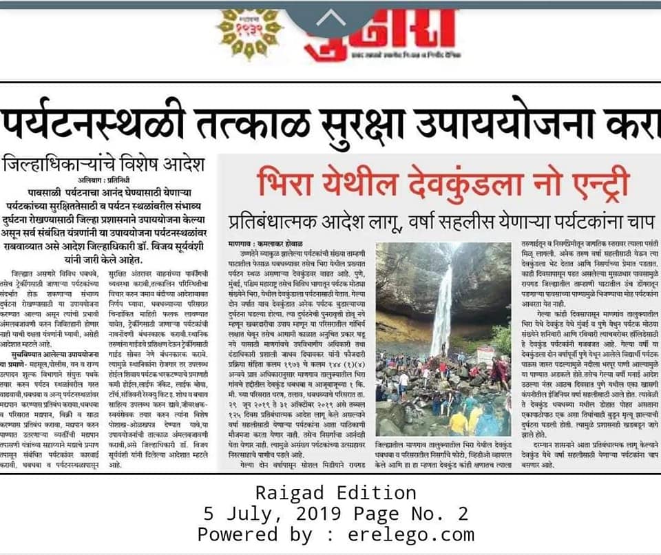 Due to the excessive drainage in the Tahhini Ghat, Devkund and Dark Braban areas, the flow of rivers and nallahs can reach the danger zone in no time and suddenly the situation of sudden change can not come easily, and there are many accidents due to the knowledge of how to deal with such sudden emergencies and not necessarily the necessary resources, People have to quit life (d This number is growing annually). Why should such a wandering wandering be done? And why is this locality become scandalous due to such exorbitant tourists?