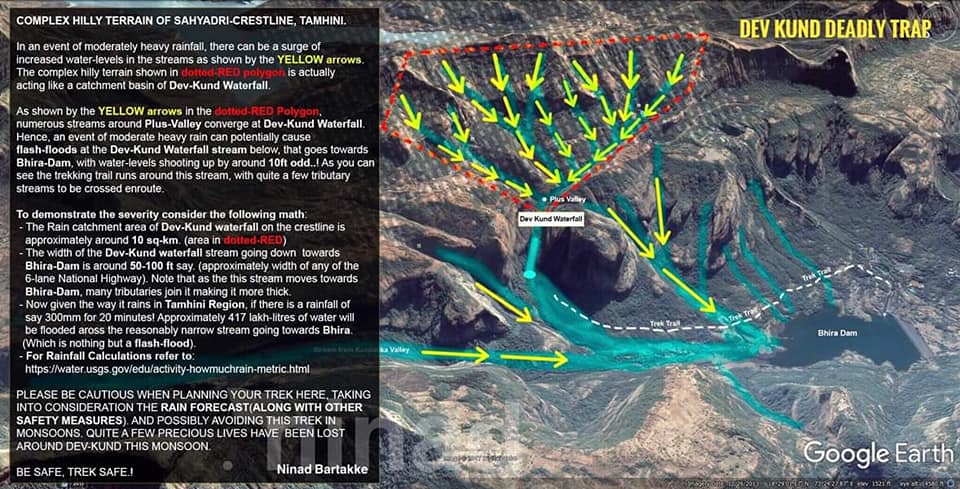 पावसाळा सुरू झाला की निसर्गाचे सौंदर्य अगदी मनमोहून टाकते आणि प्रत्येकाला वेड लागते ते पावसाळी भटकंतीचे. आपल्यापासून काही अंतरावर असलेली पर्यटन स्थळे, गड-किल्ले, धबधबे अनेक पर्यटकांना-भटक्यांना खुणावत असतात. परंतु काही स्थळांना भेट देताना तेथील भौगोलिक परिस्थिती सध्या काय आहे याबद्दल माहिती मिळवूनच तेथे भटकंती साठी जावे. असाच पुण्यापासून जवळच असलेल्या देवकुंड व अंधारबन परिसर नेहमी पावसाळी आकर्षणाचा विषय असतो. बहुतांशी हौशी भटक्यांना तेथील भौगोलिक परिस्थिती जाणून घेण्यापेक्षा हा ट्रेक अतिवृष्टीत कसा करता येईल याकडे कल असतो. विविध माध्यमातून प्रसारित होणाऱ्या जाहिराती तर अक्षरशः वेडावून टाकतात. हा परिसर अत्यंत सुंदर आहे यात तिळमात्र शंका नाही पण अशा ठिकाणांची भटकंती ही भौगोलिक परस्थिती पाहूनच करायला हवी.