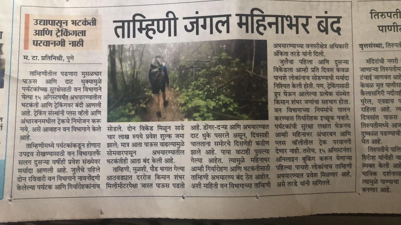 ताम्हिणी घाटाजवळचे अंधारबन आणि पालीजवळच्या सुधागड किल्ल्यावर यापुढे दिवसाला केवळ १५० जणानांचा प्रवेश दिला जाणार आहे. पुणे वन विभागाने हा निर्णय घेतला आहे. मागील वर्षांपासूनच अंधारबन आणि सुधागड परिसरातील गिरिपर्यटकांच्या वाढत्या गर्दीवर नियंत्रण आणण्यासाठी हा निर्णय घेतला होता. मात्र तरीदेखील ६ आणि ७ जुलैला अंधारबनसाठी १० वेगवेगळ्या ग्रुपनी या ट्रेकचे आयोजन केले होते. त्या सर्वाना वनखात्याने परवानगीशिवाय या भागात जाता येणार नाही याची जाणीव करून दिली.
